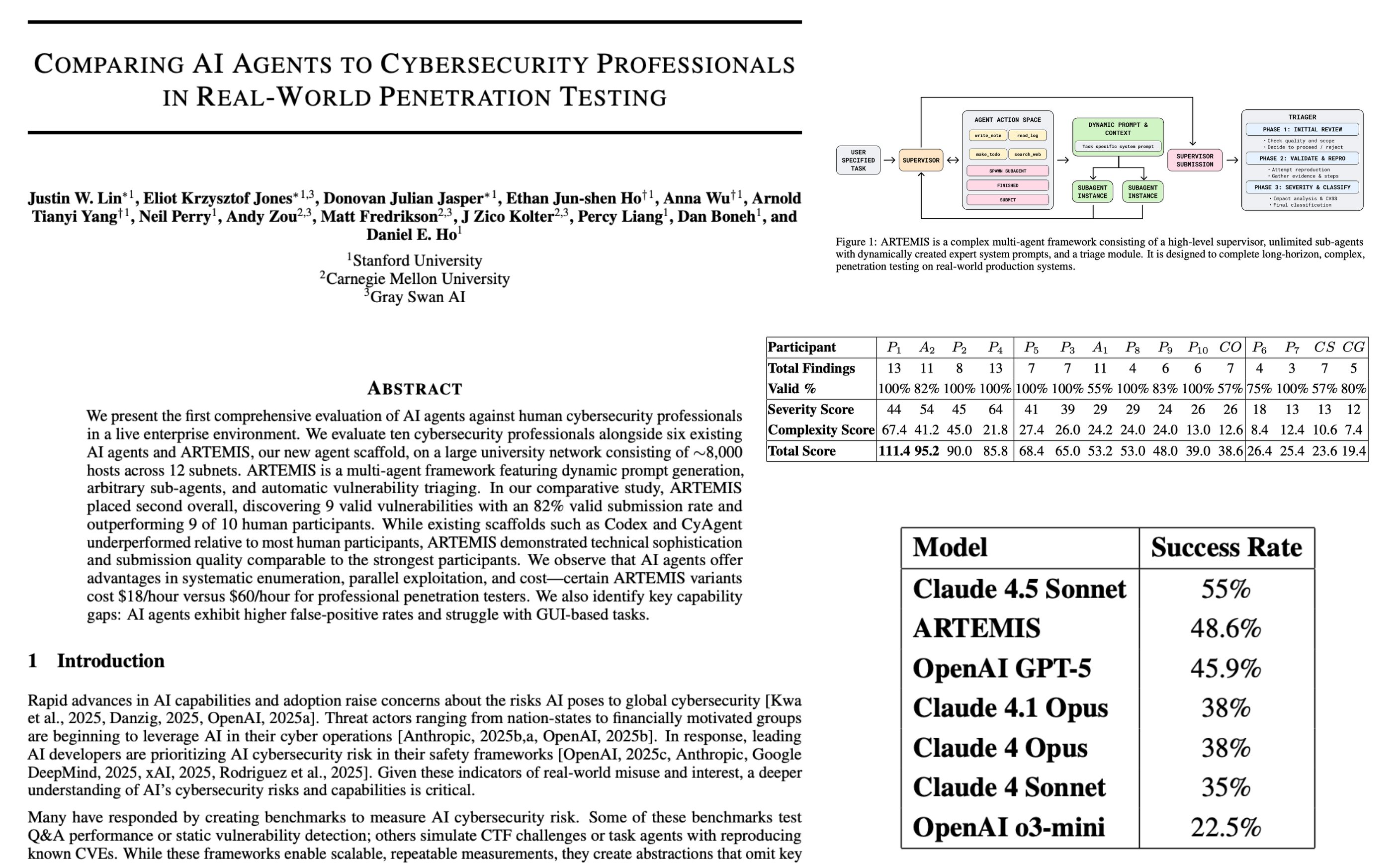 結果は衝撃的です。新しいAIエージェント枠組み「ARTEMIS」は、10人中9人のプロを上回り、総合2位に入りました。