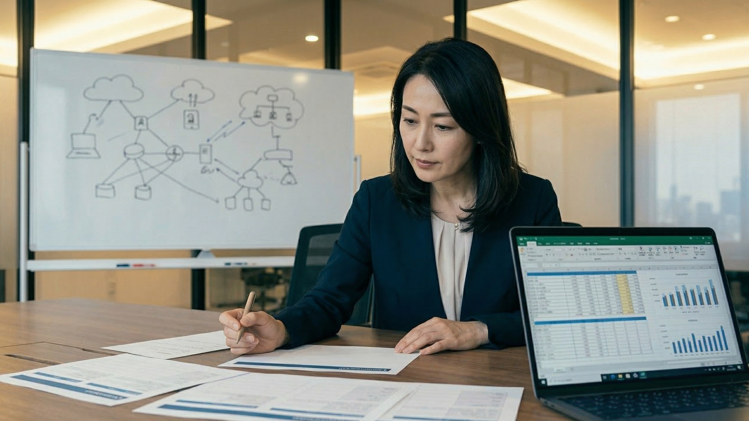 第一に、現在の業務でOfficeデスクトップアプリ(特にExcelマクロやAccessデータベース)を日常的に使用しているかを確認します。これらが業務に不可欠であればMicrosoft 365が有力な選択肢になります。ブラウザ上のオンラインアプリで代替可能であれば、Google Workspaceも十分検討に値します。