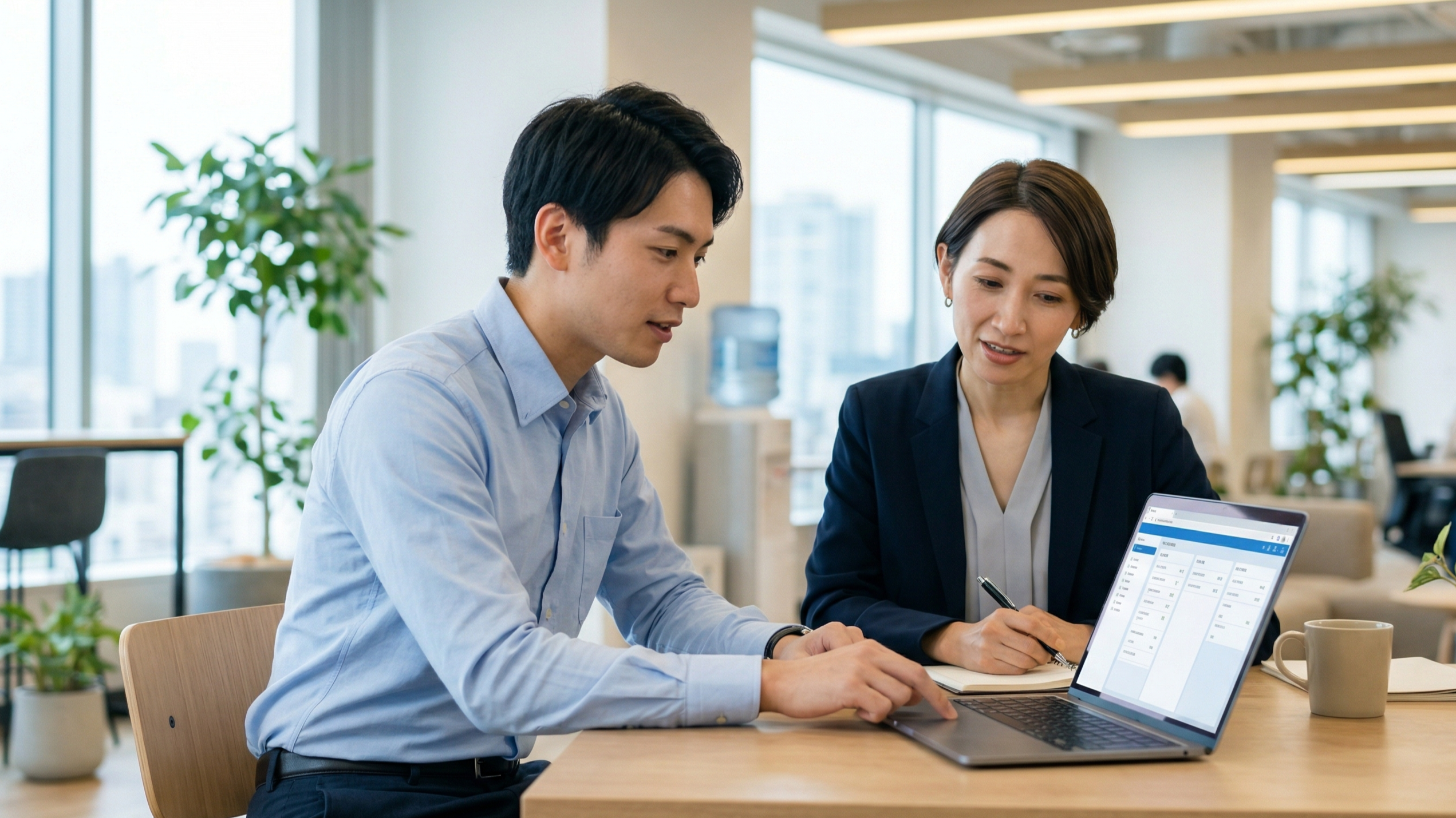 効果測定で重要なのは、「研修満足度」だけでなく「業務への適用度」を計測することです。研修後1〜3か月の時点で、受講者が学んだスキルを実務でどの程度活用しているかを上司へのヒアリングやアンケートで確認し、活用が進んでいない場合はフォローアップ研修や個別サポートを実施します。