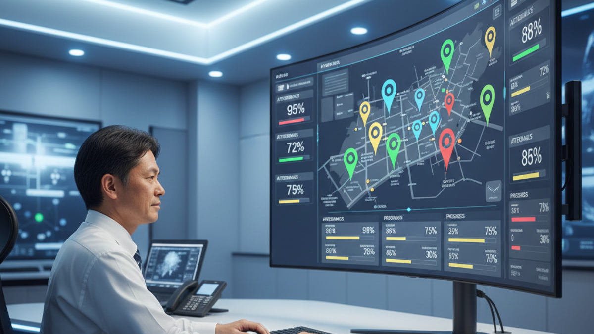 出勤状況は、拠点のタイムカードにある。 作業進捗は、拠点の担当者の頭の中にある。 問題が起きていても、報告が来るまで分からない。