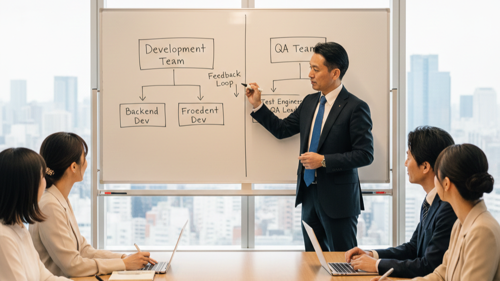 3つ目の役割は「テスト実行者(QA担当者)」です。テストケースに沿って実際にテストを実行し、結果を記録する役割です。この役割は開発者とは別のQA専任担当者をベトナム側に配置することを強く推奨します。開発者とQA担当者を分離することで、「自分のコードは正しい」というバイアスを排除し、客観的なテストが可能になります。GXOのベトナム開発拠点では、開発チームとは独立したQAチームを設置し、すべてのプロジェクトで開発者以外の目によるテストを実施しています。